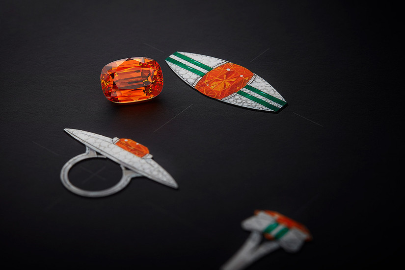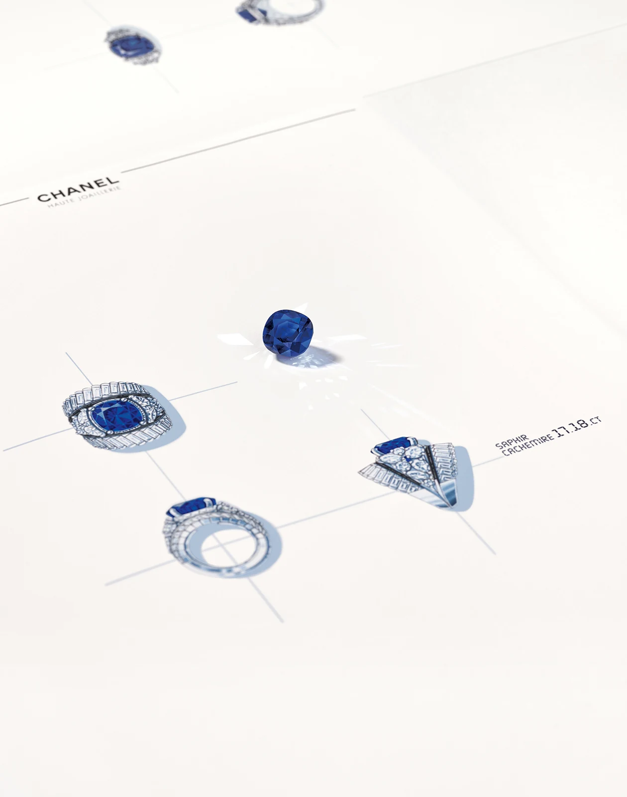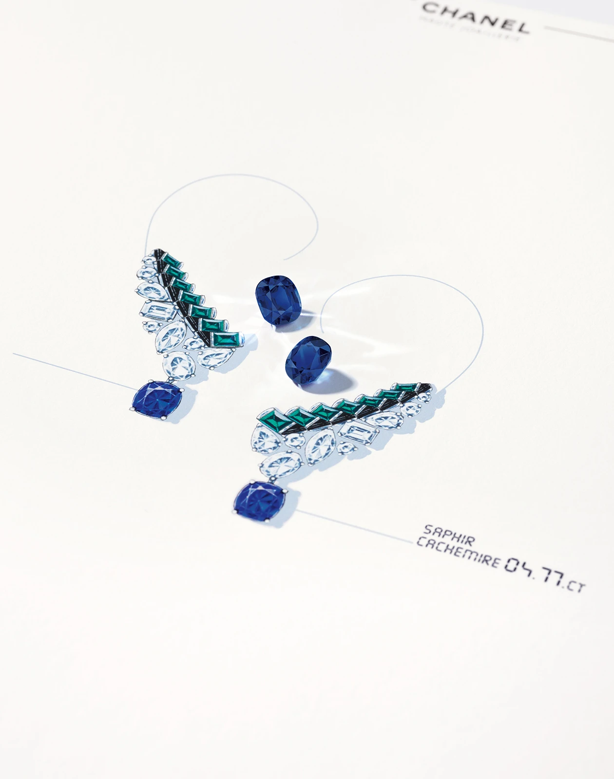 Chanel’in en radikal hareketlerinden biri, mütevazı kostüm takılarını yüksek modanın bir parçası haline getirmekti. Ancak 1932’de, süslemeleri demokratikleştirirken, aynı zamanda Büyük Buhran sırasında elmas pazarını canlandıran ilk yüksek mücevher koleksiyonu Bijoux de Diamants’ı tanıttı. Chanel, takıları kat kat üst üste kullanmayı savundu ve bunu kendisi de sıkça uyguladı. Bu yeni koleksiyon, Chanel’in bu mirasının devamı niteliğinde. Yıllar süren bir arayış sonucu bir araya getirilen beş Kaşmir safiri gibi göz alıcı değerli taşlar, karbon fiber ve alüminyum gibi alışılmadık malzemelerle bir araya getirilmiş. Bu, ilhamını aldığı kadına layık parıltılı bir tezat çalışması.